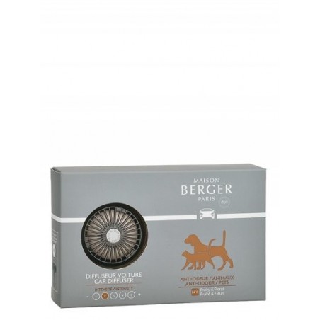 Ce diffuseur de voiture rechargeable MAISON BERGER est en métal avec un design "enjoliveur". Equipé d'une pince plastique, il s'adapte facilement sur les grilles d'aération de votre véhicule.