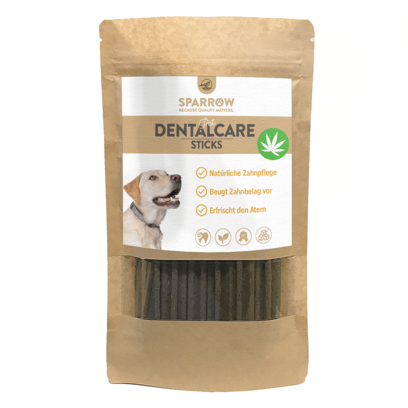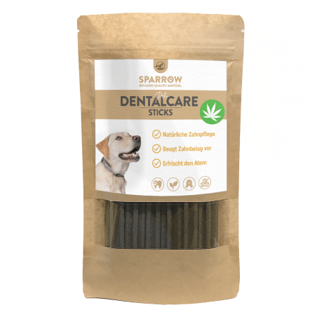 Afin de pouvoir offrir aux chiens des soins dentaires simples et efficaces, SPARROW a développé les DentalCare Sticks uniques. Ce sont les seuls qui contiennent un mélange d'herbes de soins dentaires précieux et très efficace, qui garantit le nettoyage des dents et la réduction durable de la plaque dentaire et du tartre.