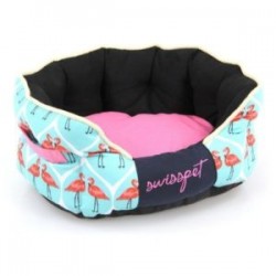 - Extérieur en coton turquoise avec motifs flamants, à l'intérieur noir, antiglisse, coussin amovible en coton rose/peau fausse beige, antiglisse