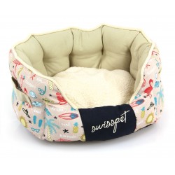 - Extérieur en coton rose clair avec motifs flamants, à l'intérieur beige, antiglisse, coussin amovible en coton brun/peau fausse beige, antiglisse