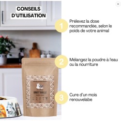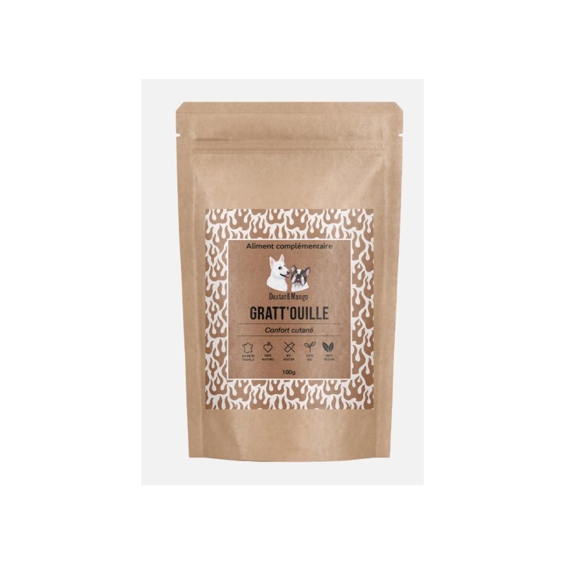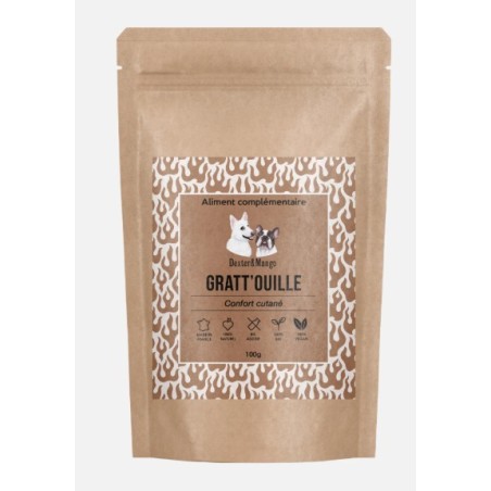 Gratt’ouille est un aliment complémentaire 100% naturel pour chiens et chats, élaboré avec des poudres de plantes destinées à lutter efficacement contre les affections cutanées.