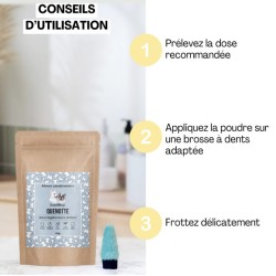 A l'aide de la cuillère doseuse fournie, appliquer la poudre sur une brosse à dent adaptée à l'animal, puis frottez délicatement.