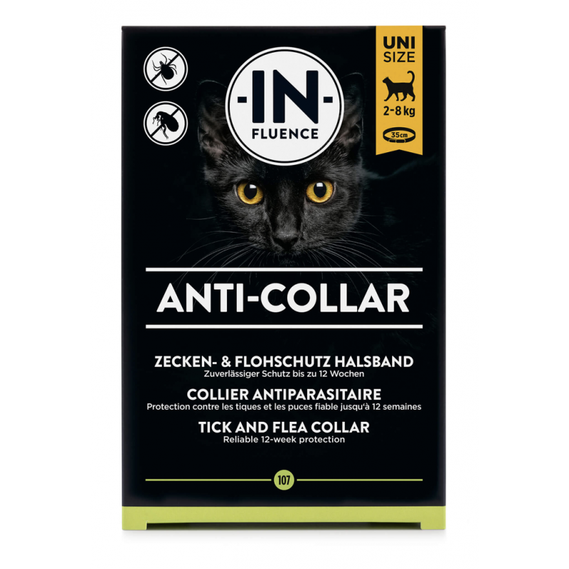 Le collier ANTI-COLLAR convient pour les chats de plus de 2kg. Le nouveau complexe d'ingrédients actifs composé de icaridine, d'huile d'eucalyptus citriodora et de géraniol, formulé de façon novatrice et combiné avec de l'huile de coco précieuse, est incorporé et stocké dans une matrice spéciale de polymère. Après l'ouverture de l'emballage, les ingrédients actifs sont continuellement libérés. Ils se répandent sur la peau et la fourrure et protègent ainsi jusqu'à 12 semaines contre les tiques et les puce de manière fiable.