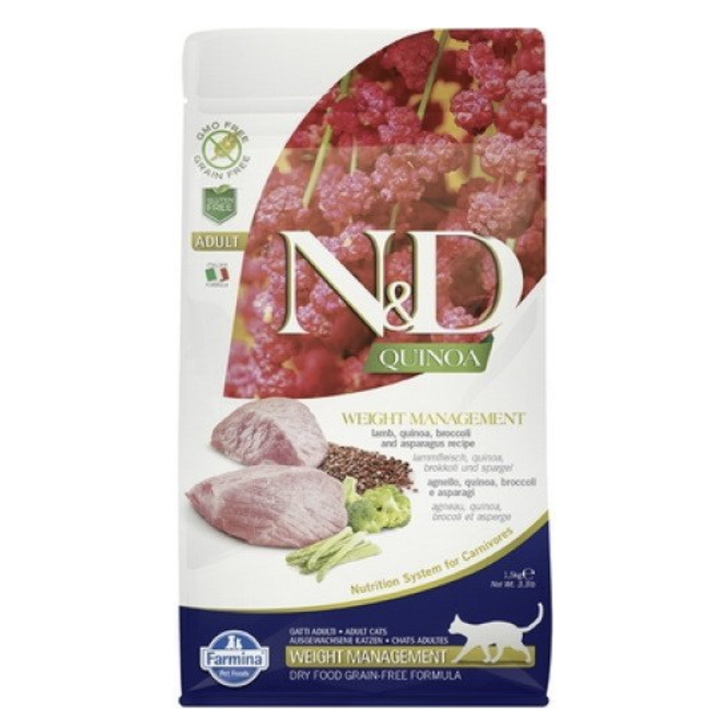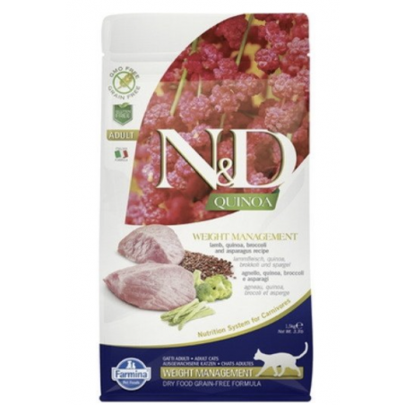 Agneau (22%), viande d’agneau déshydratée (22%), amidon de pois, graisse de poulet, œufs entiers déshydratés, fibre végétale de pois, graines de quinoa (8%), hareng, protéine de hareng déshydratée, huile de poisson (hareng), graines de lin, brocoli séché (2,5%), asperge séchée (2,5%), carottes séchée, luzerne séchée, inuline, fructo-oligosaccharides, extraits de levure (source de mannan-oligosaccharides), cosse de psyllium, chlorure de potassium, chlorure de sodium, sulfate de calcium dihydraté, levure de bière séchée.