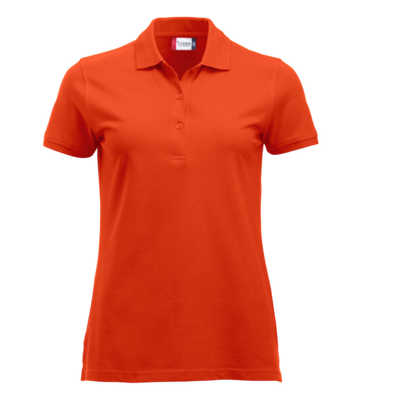 Polo manches courtes femme. Patte 3 boutons ton sur ton. Fentes à la taille pour plus d'aisance.