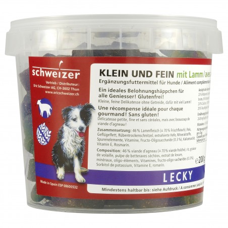 46% agneau (minimum 70% de viande fraîche), riz, pulpe de betteraves, extrait de levure, minéraux, oligo-élém